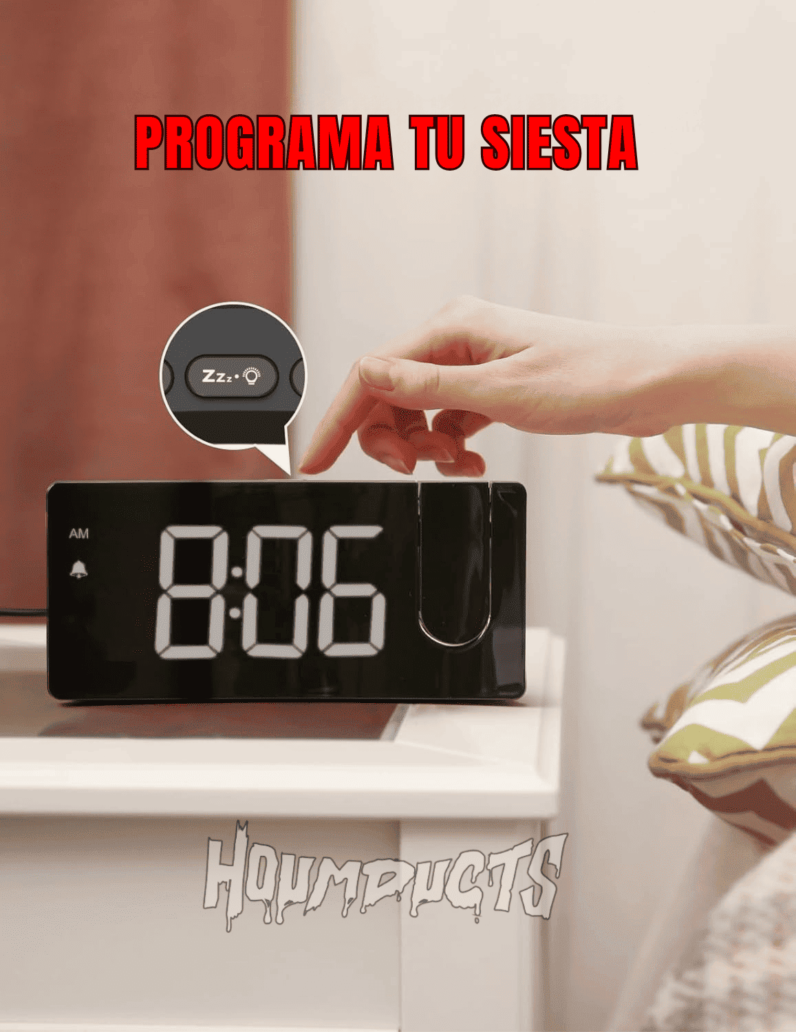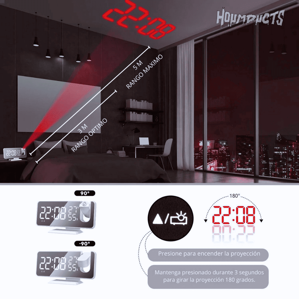 Sí. SKYWAKE permite configurar dos alarmas independientes con sonido progresivo, ideal para quienes necesitan comenzar el día sin contratiempos ni esperas. Su proyección directa al techo o pared te muestra la hora en segundos, sin necesidad de buscar el celular o encender luces.